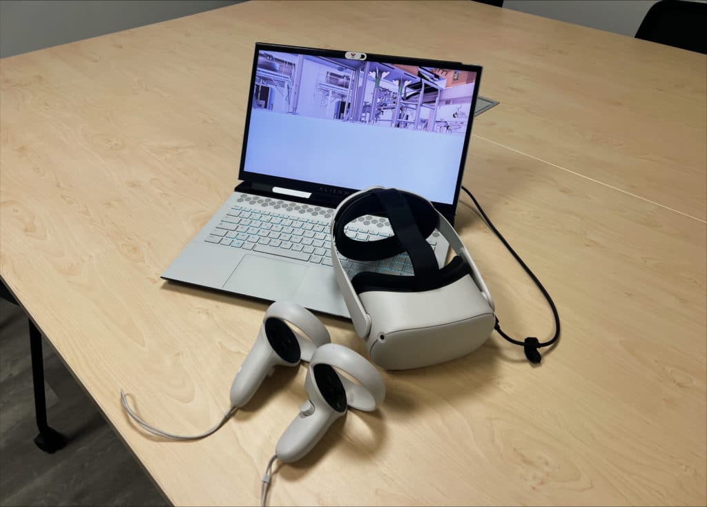 Une fois le casque posé sur votre tête, il est ainsi possible de vous déplacer autour des différentes machines à l’aide des manettes. Vous avez ainsi un véritable aperçu, le plus authentique possible, du résultat final sur votre site de production, et ce, plusieurs semaines ou mois avant la fin de l’installation.